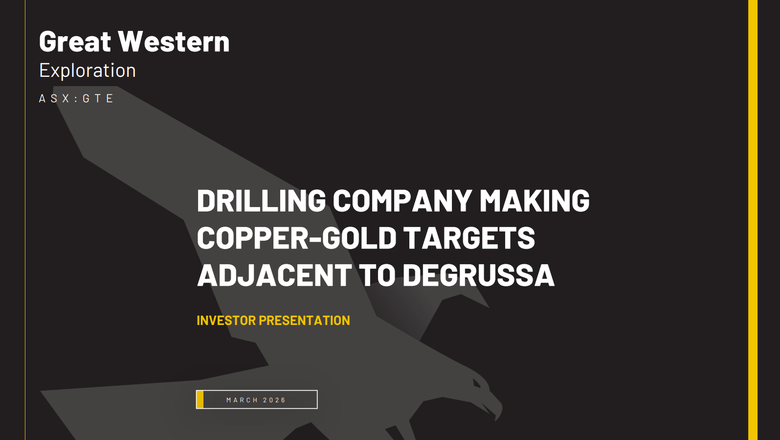 Great Western Exploration (ASX:GTE) is a copper, gold and base metal explorer, with exploration tenure close to the DeGrussa Copper-Gold Deposit